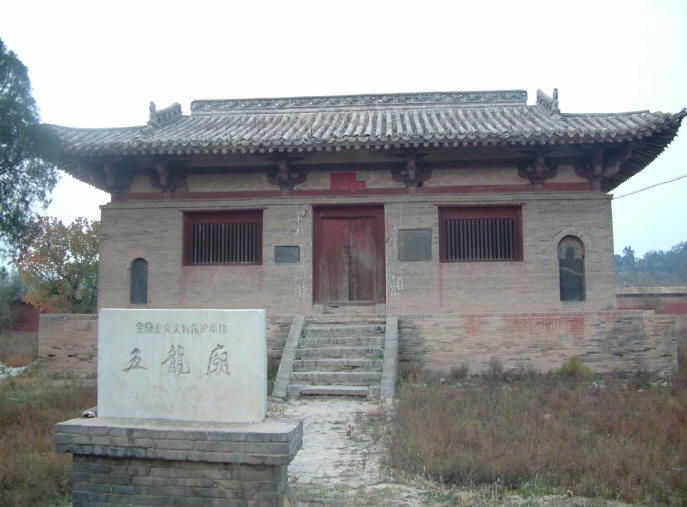 虽然经过了千余年的风风雨雨和不断修葺,仍不失唐代风 貌。与正殿相对的是坐南向北的清代戏楼,虽属清代建筑,但与正殿浑然一体,构成了一座完整的四合院形的庙堂建筑。 在五龙庙正殿墙上,嵌有唐碑两通。一为《广仁王龙泉记》,唐宪宗元和三年(808)所立,河东裴少微书,字体雄浑劲秀,详细地记载了县令于公凿引龙泉之水 灌溉农田的事迹。文中引征西门豹引漳水治邺史事,以显于公治芮之功;另一碑为《龙泉记》,唐文宗大和六年(832)所立,记载了扩建修葺五龙庙始末。这两 通碑对研究我国唐中叶水利发展史有一定的价值。