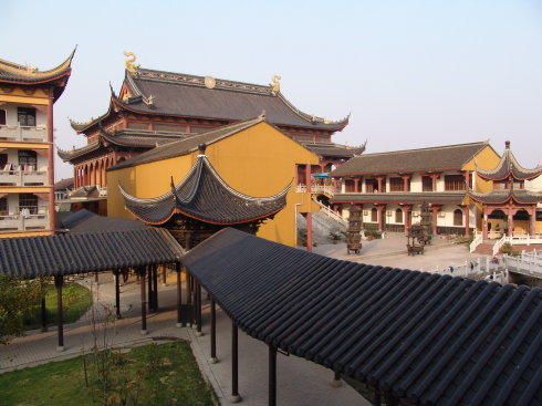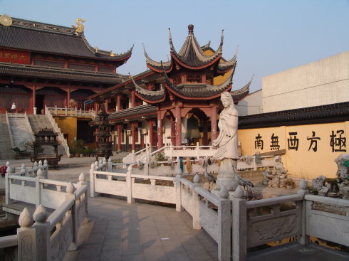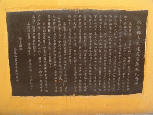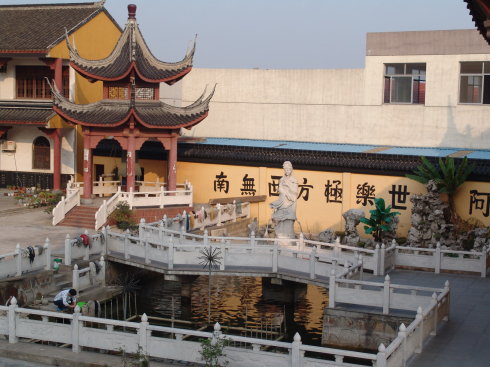 1949年,有低矮破旧庙舍15间,1958年改建成向阳中学。20世纪80年代初学校改办工厂。1998年1月恢复为佛教活动场所。历经7年艰辛,一座占地近16亩、建筑面积8667平方米的寺院重现新貌,蔚为壮观。中轴线第一进是天王殿,高敞气派。殿后是放生池,中有曲桥相通,桥东假山错落有致,池中耸立3.3米高的滴水观音,水珠喷洒而出。第二进,41级石阶之上是大雄宝殿,两层,脊高25.6米。殿东西两壁精绘四大佛山,莲池法会等壁画。背立海岛观音,并塑三圣、西方三圣及罗汉150尊。殿后上端绘有罗汉壁画,书“诸恶莫作,众善奉行”。底层为念佛堂,左、右、后壁供奉11101尊金佛。殿前石阶东侧为观音殿、东岳财神殿,西侧为地藏殿、接引殿,均为三层楼房。另有办公室、斋堂、寮房等一应设施。
