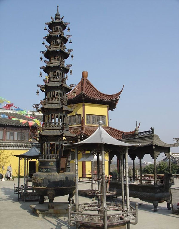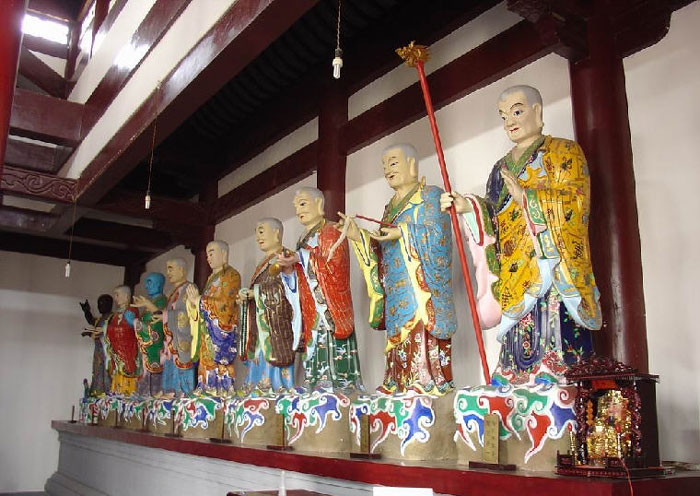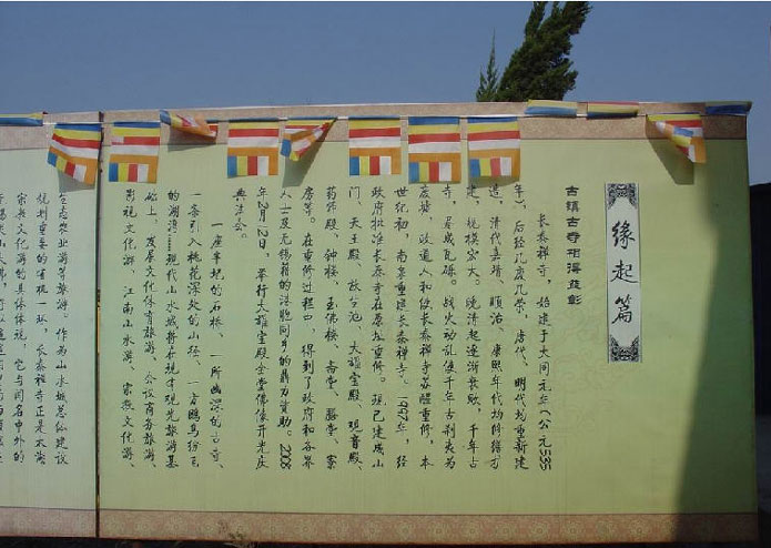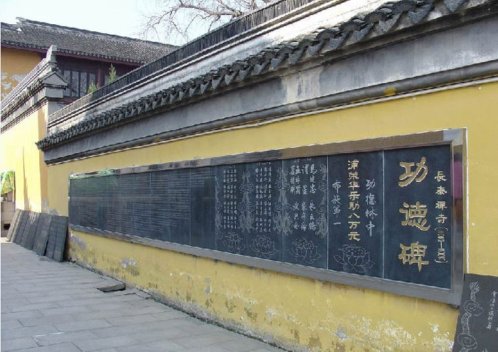 座落在雪浪街道长泰山东麓的长泰禅寺,始建于南朝梁大同元年(535),隋大业五年(609)一度荒废。唐上允二年(675)重建,后历经宋、元、明、清。鼎盛时,有寺院5048间之多。“南朝四百八十寺”之一的长泰寺,在一千四百多年的历史长河里高僧云集,各遐江南,不仅建寺之早,规模之大,而且更拥有独特的文化底蕴——“长泰八景”。一千僧井,此井通山泉,大旱水不枯;二留笠阁,传仙人留笠而去,后用楠木建阁纪念之;三巨人迹,传僧伽罗汉在崖石上留下2尺有余足迹,大雨后时隐现罗汉侧影;四画猫壁,相传明代唐寅画猫于殿壁,爪牙生动,睛锐生畏,鼠雀望而逃逸;五碧照轩,精致建筑,在此仰视半山,大有“十里香风云雾过,松柏拱翠似碧波”的景观;六宋朝柏,宋人所植,古朴遒劲,建国后列省二级文物,保存到1966年才被毁;七古银杏,树龄500多年,四人合抱不及,虬枝参天,有近30米高,至今秋实累累,果大清香;八金刚经刻,为宋代大文豪苏轼游长泰时应寺僧相邀,手书“金刚经”,刻成12块石碑,字体丰腴跌宕。“长泰八景”在千百年历史中,沧桑变幻。现古银杏树留原地;千僧井,2005年春在原址挖出十多米后已恢复原貌,井内壁为宋代古青砖、青石;苏东坡手书金刚经石刻十块半原寄藏在无锡梅园开原寺内,现已归回长泰寺。“长泰八景”已有其三。另有清雍正十三年“敕建长泰寺禅堂”竖牌一方,已从民间运归长泰寺。