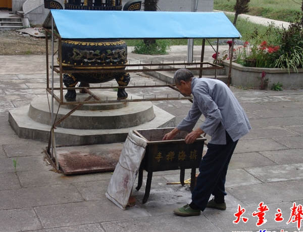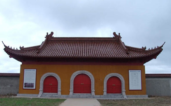 新建的镇海禅寺是一座古建筑群,四周有院墙环绕。两扇高大的山门上,有两个斗大的"佛"字,山门上方有"镇海禅寺"匾额,跨过七级台阶,进入院内,那巍峨壮丽的大雄宝殿就呈现在人们眼前。