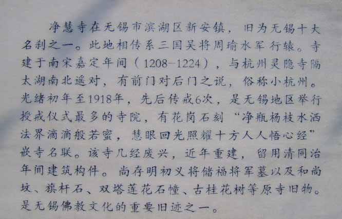 净慧寺,位于无锡新区新安镇,建于南宋嘉定年间(1208-1224),建净慧寺赐额,明万历二十七年里人王仕重建。