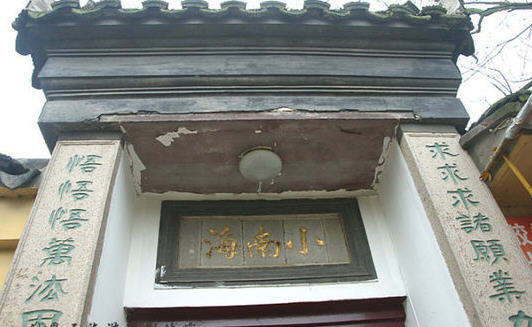 广福寺左面的「小南海」,是普善禅师退居後,於一九二九年募款创建,作为晚年静修场所之用,原来为独立寺院,一九五八年合并到广福寺,山门两旁钨刻「悟悟悟万法因缘生正觉广修」、「求求求诸愿业力转慈航普渡」槛联,颇发人深省。