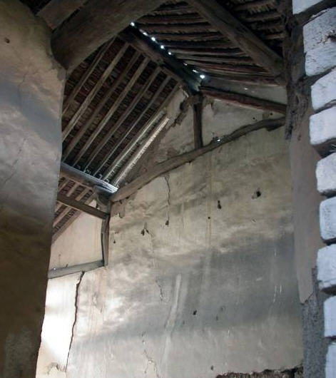 现存三滴法藏阁,面阔三间,高二层,悬山顶,上层檐南侧前接出一檐,远观为“三滴水”式屋顶。下层曾塑药师佛及左右胁侍菩萨,上奉地藏王菩萨(佛)、观音二菩萨(倒坐),楼从背后看为三间悬山顶大殿,为院内地势高于院外造成的原因,所以产生了前楼后殿的奇特形式。