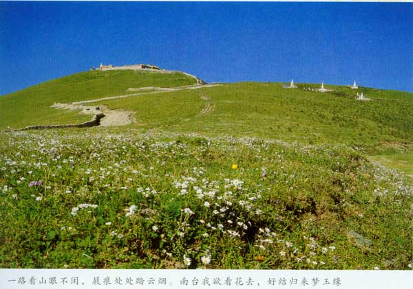 五台山,由东西南北中五座台顶组成,其中,东北西中四台,一山连属,势若游龙,惟南台独秀而居。南台顶,亦名锦绣峰,以其山花烂漫,花香四溢,品种繁多,景色秀丽而得名。南台海拔2489米,是夏秋之际游人登山赏花阅野的理想之所。