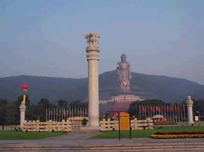时岁更替,乾坤清朗,国泰民安。在党的宗教政策的春风吹拂下,经无锡市人民政府批准修复祥符禅寺,千年古刹获得了新生。又经江苏省人民政府批准,在祥符寺后小灵山上建造一尊当今世界最高的八十八米青铜释迦牟尼佛立像,以图山色并湖光媲美,古寺与大佛齐辉。“万顷湖光耀佛像,千峰秀色落僧房”,更显祥瑞仙境之灵。