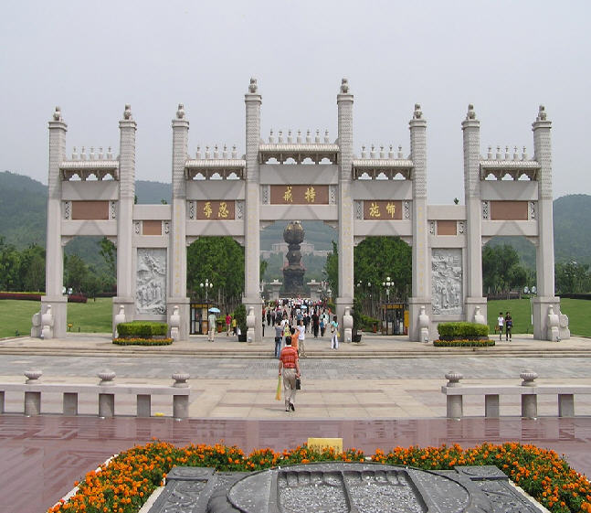 修复祥符禅寺,建造灵山大佛,承佛陀之教义,创无锡之大观。整体规划面积四百余亩,以南坡线为中轴,奠五阶台地,置九级浮屠。由下而上立照壁、山门、天王殿、钟鼓楼、大雄宝殿、大佛立像。依山而建,错落有致。左右两侧禅堂,僧房、配殿若干,靡不毕备。曲径通幽,渐入佳境;层层推进,蔚为壮观。其余服务设施均依势而筑,各得其所。云水胜境,相得益彰。