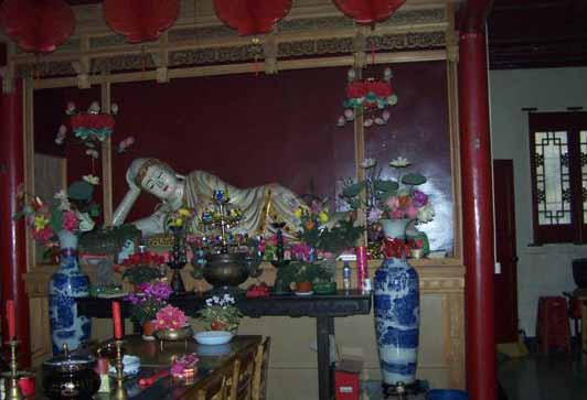 狮子国所贡玉像。《南史.师子国传》:“晋义熙初,始遣使献玉像,经十载乃至。像高四尺二寸,玉色洁润,形制殊特,殆非人工。此像历晋、宋在瓦官寺。”狮子国,即今斯里兰卡国。这尊供奉于瓦官寺“世称为三绝”之一的玉佛像,竟被荒淫无道的皇帝、齐东昏侯萧宝卷为取悦宠妃潘氏,“毁玉像,前截臂,次取身,为嬖妾潘贵妃作钗钏”。