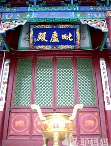 大雄宝殿后为拾级而上的第二进院落,院内有毗卢大殿。凳斯院中,居高临下,峰峦怪石,碧树奇葩,尽收眼底。一江和尚云:“五月清凉界,谈经入凤林。松风和梵语,流水奏幽琴。云淡曼殊面,花研古佛心。不须觅黄卷,遍演法王音。”