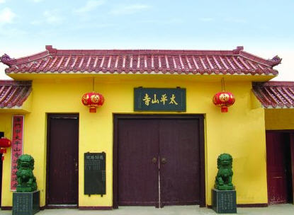 太平山寺位于包场镇河塘村,原名太平山庙,因庙建在太平山而得名。太平山名为山,实为一座土墩。据史料记载,古时包场一带还是大海,一日,从海上漂来一尊石观音像,百姓围观,有人叩头问道:“观音菩萨,此处有座太平山,你可愿意在此安身吗?”但见石像微笑,似点头应允。于是人们把她请到“山”上太平山庙供奉。沧海桑田,白云苍狗,1946年土改时太平山庙有庙房11间,其中朝南屋2棣,每棣3间,朝东屋5间,属厢房。1952年、1978年,先后两次被县文教局、中心校拆去部分庙房建造新余小学。石佛像也被移进附近一陋室供奉。“文革”中,“石观音”倍遭劫难,被人砸得身首分离,沉入河中。1992年,当地民众将“石观音”打捞出水,并发动捐资修复了大殿。2002年1月,太平山寺经南通市民族宗教事务局批准正式对外开放,修复后的“石观音”作为主佛被供奉在太平山寺大殿内。2007年6月,“石观音”被市政府列为“第三批县市级保护文物”。