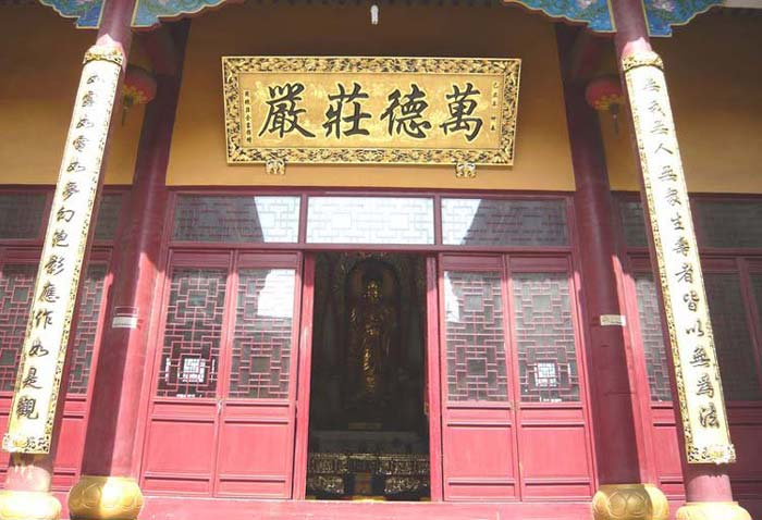 岁月传承,法乳清流,古静海庵直至一千四百年后的光绪未年(公元1890年),由扬中一权贵俞氏四姨太携女儿以出离世俗,潜心修学之心,带一船壮竹和稻草顺江而下,来此古静海庵旧址复建古庙,改名为“观音堂”,其时所建殿堂三进五大间,复有农田十余亩,此优婆夷常住道场闻名一方。非常时期,社会动荡,“观音堂”受时代影响,被迫关闭,优婆夷俞氏其徒妙法进山潜修,后于一九八九年在四众弟子的帮助下恢复观音堂的日常宗教生活。妙法于一九九二年在观音堂往生。后其师兄果清重塑堂上佛像,复建韦陀殿,一九九九年77岁高龄的果清自知年事已高,遂把观音堂衣钵托付给自幼在观音堂闻法学佛的法正法师。法正法师少年时于绍隆寺出家,并于二零零四年发愿重建观音堂所有殿宇,宏宗祖恩,历经艰辛,于二零零六年十月建成如今规模,并更名为“观音禅寺”。