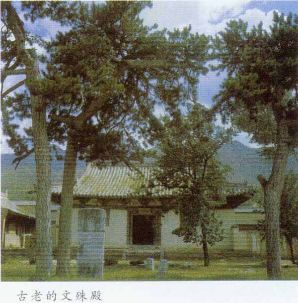 寺内古木森森,殿宇嵯峨。正殿早已毁圮,现有的建筑为南殿、东配殿、西配殿、禅院及山门、钟楼等。除南殿外,其余房舍均为清朝至民国初年的建筑。南殿又 名文殊殿,殿内巨大的方形佛坛上,正中供奉着文殊像,两侧是胁侍和天王等彩塑,北面是水月观音,均为金代塑品,颇为传神,亦很名贵。