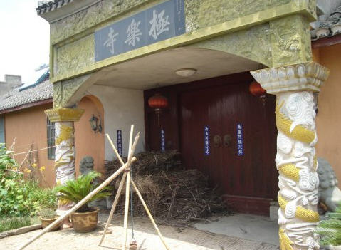 极乐寺座落于启东市东海镇榆字村12组,创建于1932年。庙主陆文荣出资,建造了五间朝南瓦房,中间供释迦牟尼佛和弥陀佛等佛像,两头供城隍、土地像,另有三间朝东屋,为厨房、宿舍。群众纷纷进庙求神拜佛,香火很旺,大家称“陆文荣庙”。当时请了个道士陈松林住在庙里看香火,还有一部分盐兵也住在庙里。