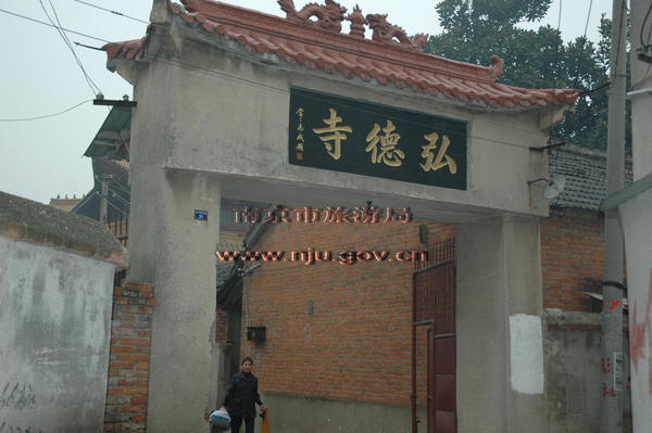 弘德寺(又称百子庵):民国《江浦续志稿》礼伴俗志.宗教目下载:“百子庵,在治城东门街后(今区公安局宿舍楼处)。相传明时胡贞女建成。清咸丰冠中毁,同治(1862-1874)初六尼普修复建五间两进,缭以土垣,垣内有水井一眼,在旱不涸。民国八年(1919)袁贞女自成尼重修。”解放后,3间大殿一直保留至80年代,后因珠江幼儿园拆建而拆除。1987年,住持德宽师太与德兰、德志、照成等五位比丘尼移址至原江浦县珠江镇全红村(现更名为浦口区江浦街道珠江居委会全红组31号),有平房5间,寮房4间。至1990年,另有斋房、寮房 间。2000年,经南京市宗教局和江浦县统战部批准,将百子庵更名为弘德寺。同年,信众捐资重整寺庙,新建大雄宝殿5间(大殿长24米,进深12米,高22米)、寮房4间。 弘德寺坐落于浦口区政府所在地江浦街道城西,求雨山东麓,求雨山南北走向,根自老山,脉通长江,天然敦厚。弘德寺与观音庵毗邻,寺庵呼应,相得益彰,大雄宝殿风格以仿宋建筑为主,占地约2600平方米。