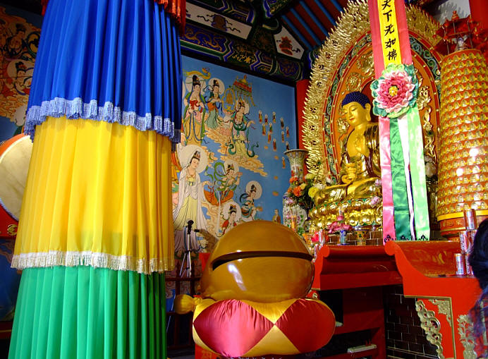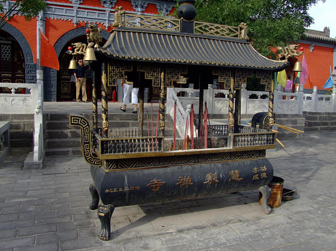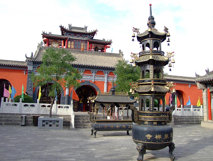 新建的慧泉寺,在恢复原建筑的基础上,新增了观音殿、地藏殿、普贤殿、文殊殿、伽蓝殿、达摩祖师殿、藏经楼(钟鼓楼)、念佛堂、龙王 庙、古戏台、流通处、碑廊等计四十一间殿堂等建筑。还新建了僧伽院、居士林两处院落。其中大修原建建筑511平方米,新建筑1431平方米,硬化广场 2000余平米。重塑金身24尊,其中铜像4尊,木雕像3尊,其余皆为 泥塑像。彩绘壁画面积250余平米。各殿堂檀替、过廊、垂花门等处木构建筑采用和玺彩、大金点、上五彩、苏式彩等彩画手法,雕梁画栋,精心彩绘。彩绘面积 达600余平米。要说投资大,工期长,有史以来这是最大的一次修缮扩建工程。