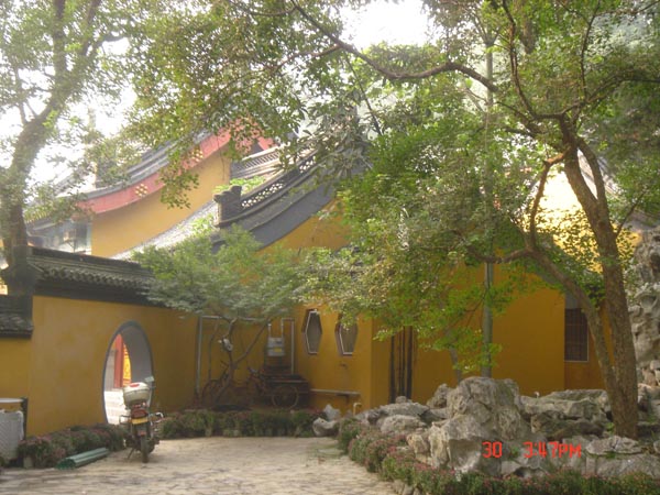 玄奘殿后面是一处天井,左侧的一间建筑是玄奘寺的客堂,右侧是寺院的斋堂,斋堂如同俗家的饭堂、食堂。