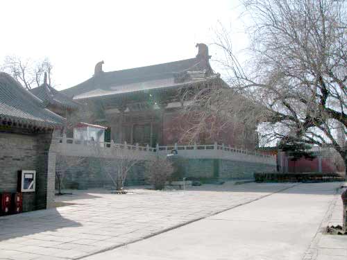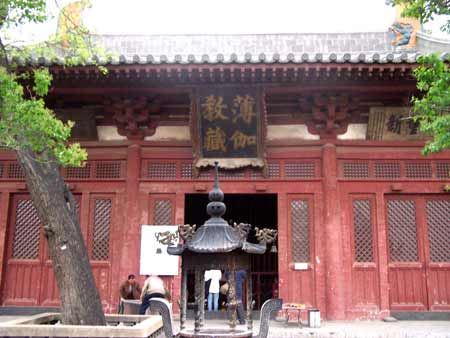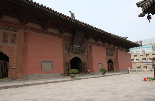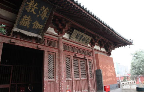 山西大同下华严寺位于上华严寺的右前方,俗称下寺,主体建筑为薄伽教藏殿,建于辽重熙七年(1038年)。下寺布局较自由,建筑风格活泼,以薄伽教藏殿为中心,有天王殿、南北配殿、山门和左右碑亭,别为一院。