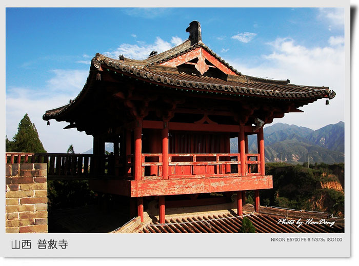普救寺位于山西省西南部永济县境内的峨眉塬头。这里是我国历史名剧《西厢记》故事的发生地。寺内有座方形砖塔,原名 舍利塔,俗称莺莺塔。这座塔同北京天坛的回音壁、河南宝轮寺塔、四川潼南县大佛寺内的“石琴”,并称为我国现存的四大回音建筑;和缅甸掸邦的摇头塔、匈牙 利索尔诺克的音乐塔、摩洛哥马拉克斯的香塔、法国巴黎的钟塔、意大利的比萨斜塔,并称为世界六大奇塔。