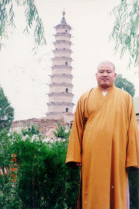 传义法师在甘肃鸠摩罗什塔顶礼后留念