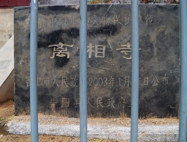离相寺始建年代未知,现存大殿为元代早期建筑,明清曾数次重修,寺内遗留明清碑碣共九方,以及一座拆毁的青石质经幢。经幢构件散乱堆放在大殿的台基上,大约可以复原,幢身上有“大元国”字样,但是实在看不清楚。