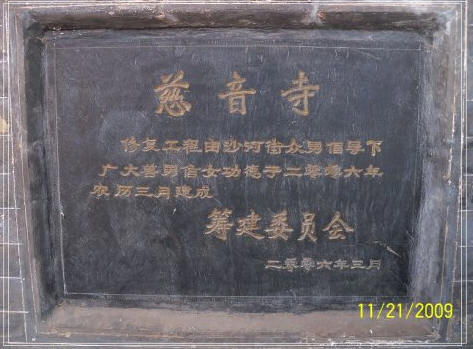 祁县慈音寺,原名“南海观音寺”,实际上也是一座供奉“送子观音”的娘娘庙。该寺位于祁县城赵镇城赵村正中大街的南侧,始建于明末清初,现存建 筑为清光绪年间重修后所遗。寺庙为一进院落布局,坐南朝北,东西宽约20m,南北纵深约10m。寺院建筑简单,没有复杂的木结构和精美的“三雕”艺术。慈 音寺大雄宝殿,居然简单到了单坡硬山顶的程度,这也是祁县境内现存唯一的此种形制的大殿。