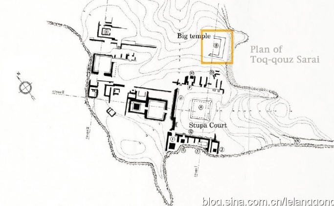 托古孜沙来佛寺,与印度西北部尤其是犍陀罗建造的寺院十分相像。韩百诗等人推测此类建筑大概是在4世纪时通过今阿富汗传至图木舒克的。伯希和曾 发表意见指出图木舒克遗址“是中国突厥斯坦最古老的佛教遗址之一,至少是在塔里木北部发现的所有佛教遗址中最古老的”。研究者认为,托古孜沙来寺院是从一 个原始的庙宇发展起来的,其周围后来修建的建筑物构成一个四角形的建筑群。其布局类似它的犍陀罗模式,不过建造时考虑了地形。托古孜沙来佛寺其使用年代从 4世纪末或5世纪初,最晚7世纪。寺院周围的某些建筑可能仅存在了一个短暂的时期,或在7世纪时中国与北亚诸国的战争过程中消失,或在穆斯林政府时期毁 灭。