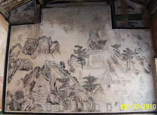 观音庙山门一间,内外双柱悬山顶,构造简单。正殿三开间(实两间),进深四椽,檐下无斗 栱。前壁稍微改建,直棂窗是旧物,门为新装。殿内梁架简洁规整,彻上露明造,三椽栿对搭牵设前槽两柱。两柱以横枋连接前角柱,横枋下设门楣,兼作内影门。 殿内三壁均有壁画残留,正壁残留较多。