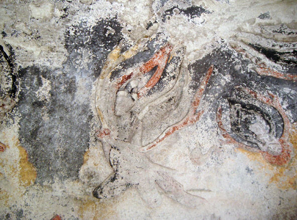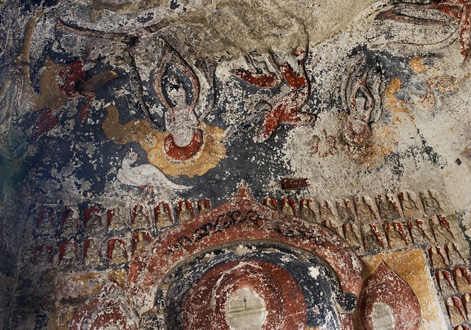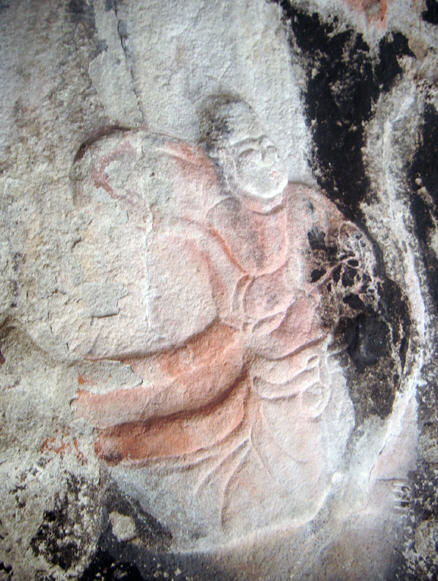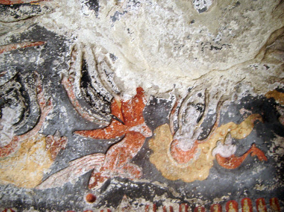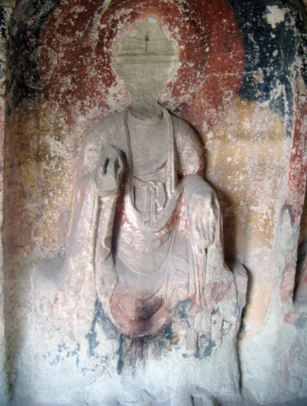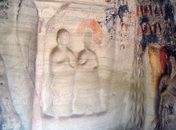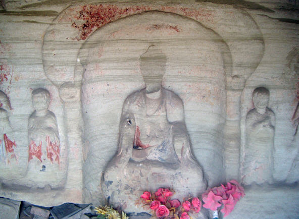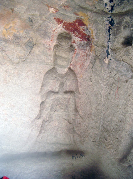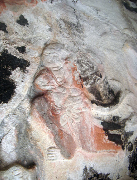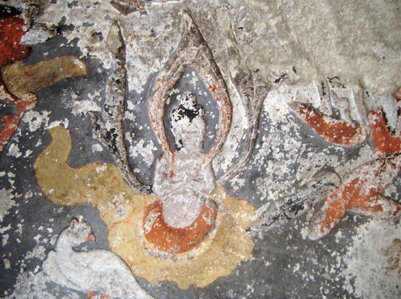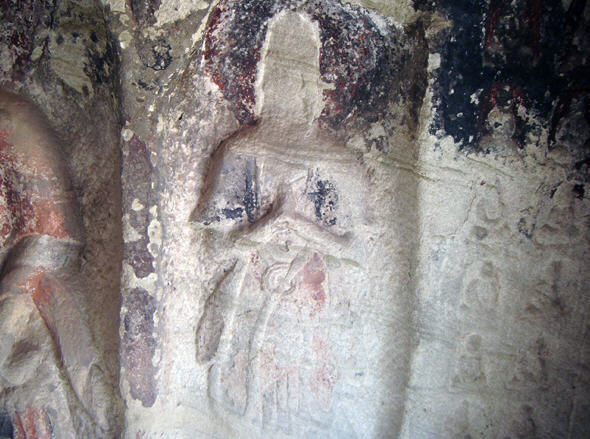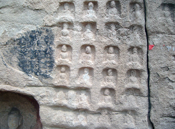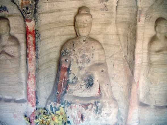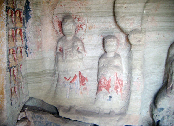 此外,两窟外连接两窟的石壁上还凿有高约1米的佛龛4个,惜龛内造像风化严重。