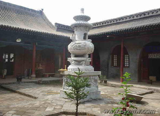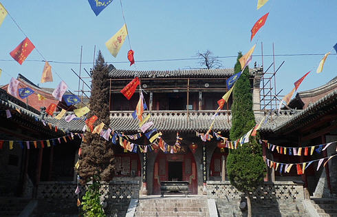 古称西域寺,相传创建于唐,重修于明嘉靖十 六年(1537年)。后经过九次增补维修。寺坐北朝南,依山筑基,就岩起屋,南北高差30米,四进院落,层次有致,六十间殿宇尽藏于山坳丛林之中。总面积 7792.6平方米。现存主要建筑有山门、弥陀殿、观音阁、大雄宝殿、七佛殿、观音殿、地藏殿等。
