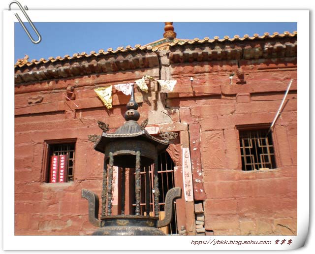 中殿,也是用巨石砌垒而成,顶部的藻井比东殿更加雄伟壮观。内供一佛,由于年久失修,很难辨认是什么 佛,有人说是释迦牟尼佛,可是当地人管此佛称做“西天古佛”,即西方极乐世界的教主阿弥陀佛,简称弥陀佛。佛经说,任凭人,只要口念弥陀的名字,就可以消 罪去灾。因此,旧时在寺院墙上写有“南无阿弥陀佛”的大字,意思是向阿弥陀佛致敬,故此殿俗称古佛殿。