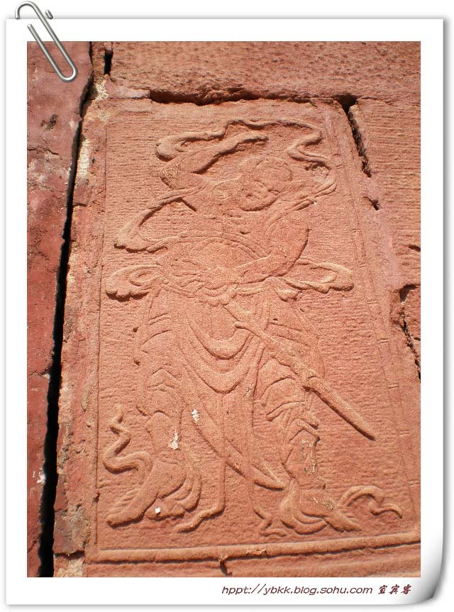在三个殿门的外壁上均有精美的浮雕。东殿,左为犀牛望月,右为丹凤朝阳。中殿是两个金刚力士。西殿是两个伽蓝菩萨。这在组浮雕,线条明快简洁,有呼之欲出之感,在浮雕中堪称上品。