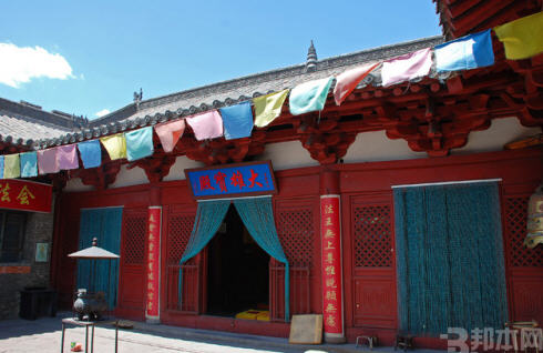 东西配殿面阔各三间,进深二椽,施五铺作斗拱。