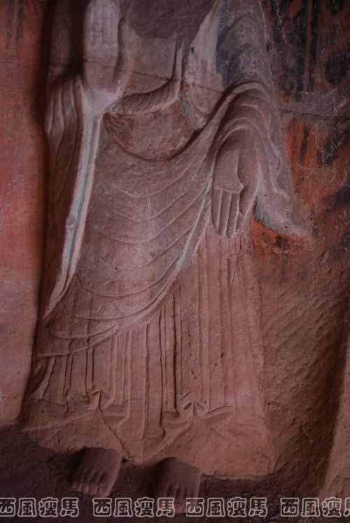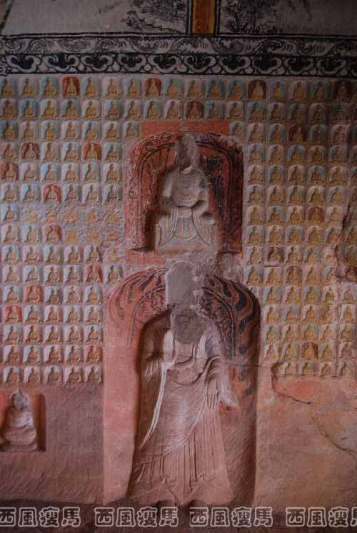 现寺宇已毁,佛像尚存,并有千佛洞一区。 今存摩崖造像一尊,高3.3米,面形方圆,肩披袈裟,罗纱透体,结迦趺坐,周围配有美丽的花纹,雕琢精细,形态逼真,确为唐代石刻造像之精品。
