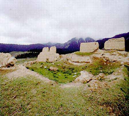 夏尔苏木喇嘛庙,始建于光绪五年(1879年),其建筑风格类似西藏的布达拉宫,雄伟壮观。据考证,遗址周围树木成阴,水草丰美,是当时新疆沿天山一带的著名宗教庙宇之一。