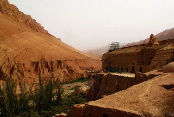 柏孜克里克石窟位于新疆维吾尔自治区吐鲁番市区东北约 40公里的火焰山峡谷木头沟河西岸。