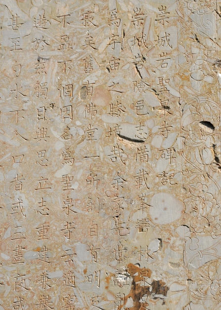 刘秀做了皇 帝之后,为了嘉奖岑彭等人,在岑彭寨修了寺庙,庙宇气势之大,规格之高,至今仍可从残垣断壁中窥见一斑。岑彭寨宛如一雄狮卧在那里,张着血盆大口大声吼 叫,狮子的嘴正是一个大溶洞,洞内面积约600平方米左右,高约20米,这里就是当年岑彭的“兵寨”,山上其它地方并没有水,只是这洞中的一眼泉水,名曰 “圣泉”,谓之“圣”是因为这水在60厘米见方的小水坑内,时常保持清澈见底,满而不溢,且取之不尽,用之不竭,水舀了自然就又满了。这洞壁也有几个直径 约15厘米的泉眼,里面的水也是满而不溢,取之不尽。岑彭千军万马屯居此地就是饮用“圣泉”水的,直到现在圣泉水也永远保持满而不溢。所以“古庙”,取名 “圣泉寺”,因为寺在洞中,有人也叫洞中寺。至今附近的老百姓每逢初一、十五都要到庙里上香。洞中有六块碑,分别为雍正十年、乾隆四十三年、道光五年、光 绪十三年、民国二年、民国十八年修缮圣泉寺的记载。
