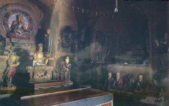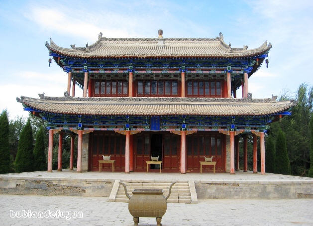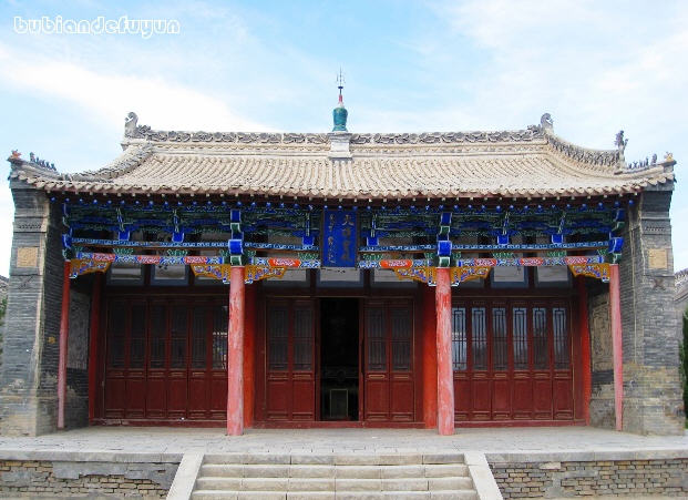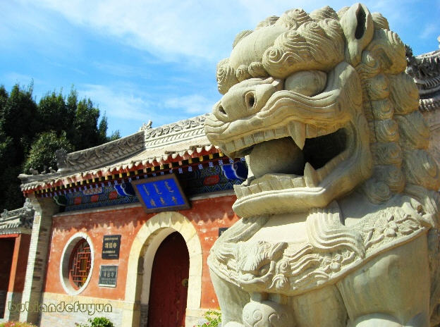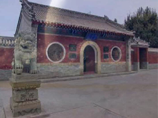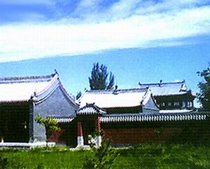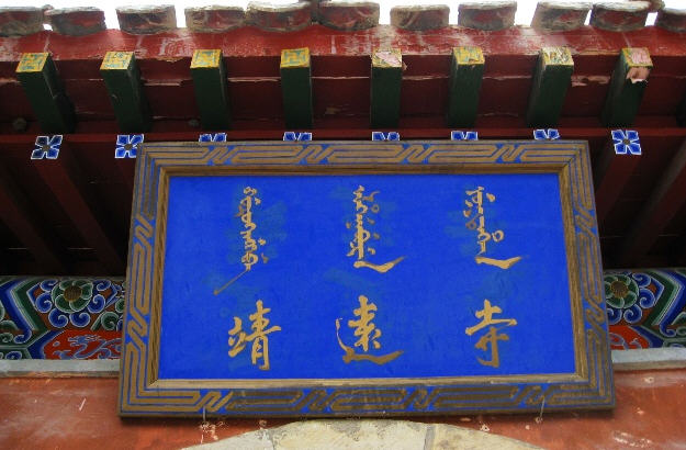 “靖远寺”规模宏伟壮观,建筑面积为1000平方米。四周筑有高大围墙,山门前有砖雕影壁,正门上方刻有锡、汉文“靖远寺”大金字,笔法工整,苍劲有 力。庭院宽阔幽静,连接各殿房的路面皆为砖铺。靖远寺整个建筑错落有致,布局对称,工程精细,雕梁画栋,异角飞檐,极为秀丽。靖远寺整个建筑都采用砖雕、 木雕艺术,配有彩绘、泥塑。