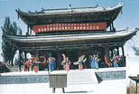 靖远寺位于察布查尔锡伯自治县城以西5公里处的孙扎奇乡,是锡伯营八旗军 民于1893年(清光绪十八年)合力积银捐资而建成的。“靖远寺”规模宏伟壮观, 建筑面积为1000平方米。四周筑有高大围墙,山门前有砖雕影壁,正门上方刻有锡、 汉文“靖远寺”大金字,笔法工整,苍劲有力。庭院宽阔幽静,连接各殿房的路面皆为砖铺。靖远寺整个建筑错落有致,布局对称,工程精细,雕梁画栋,异角飞 檐,极为秀丽。靖远寺整个建筑都采用砖雕、木雕艺术,配有彩绘、泥塑。
