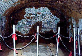 佛教盛行於龜茲是有歷史淵源的,昔日的龜茲國不僅因為處在東、西方往來的交通路口,也是一個人文思想彙聚交流的地方。西元一世紀末,小 乘教派「說一切有部」傳入龜茲,最初的小乘教僧眾,可能是一些來自犍陀羅地區的大月氏人。那條佛傳之路要翻越崎嶇綿延的興都庫什山,穿行荒涼的戈壁沙漠, 但對那些傳經佈道的僧眾來說並不陌生,因為他們的先祖是世居祁連山一帶的大月氏,他們在走著一條回歸之路。磨難的經歷賦予了小乘教派僧眾堅韌的秉性,至今 遺留在龜茲境內的佛教洞窟,記錄了佛教東漸的歷史。