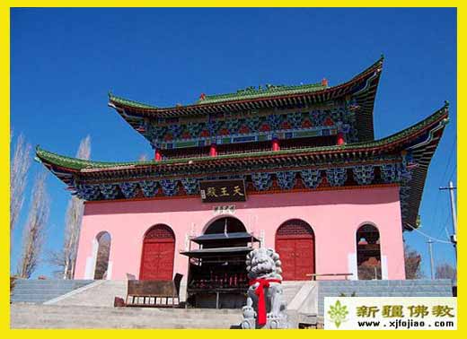 华宁寺,位于新疆伊宁市郊三公里伊犁河大桥北侧一百米处,一九九四年动工,一九九七年落成,一九九八年五月三日,举行该寺竣工和佛像开光典礼,恭请四川照全法师前来开光。