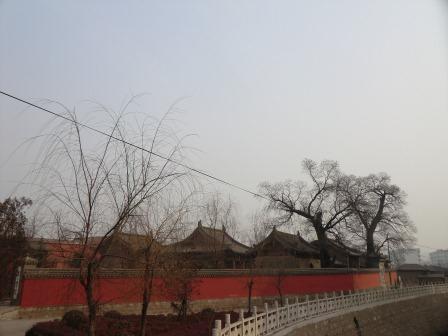 在当地老百姓眼中,大王庙,也叫无梁殿,据大殿外遗存的碑石记载,大王庙南有过殿三间,又称马王殿,殿前有砖砌拱形山门。依坡而筑,北高南低,坐北朝南,东侧有旁门,通明禧寺,再往东即关帝庙,组成以寺为中心的儒、道、佛三教合一的古建筑群落。