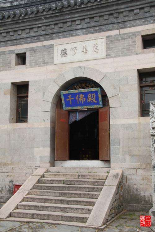 从大殿左侧的石台阶登高低重叠的佑国寺。这是南山寺的高外建筑,这里的石雕内容最丰富。第一进院落和大殿前,有一个汉白玉石砌成的高台建筑,高 台建筑的所有边缘,连同大院的前沿,都有石栏杆和石立面围着,上面共雕着三百一十六幅图案。有干枝梅、山菊花、牡丹、风竹;有去中凤凰、空中飞龙、狮子滚 绣球,麒麟相逐、鹿登梅山、奔马迎日;有进喜鹊登梅、莲下立仙鹤、丝带束棋、海螺、仙桃,等等。在平台的两侧,有五幅大立面石雕,刻有各种人物。正中的一 幅为“福禄寿三星”;左右两侧为“琴棋书画四长者”;北端的边幅为“穆桂英挂帅”;南端的边幅,刻四武士护卫二老者,其中一老者手握宝葫芦。在第二进大殿 的正面大雄宝殿左侧,有一个窄过道,通入大殿后面的禅堂院,院中立有慈禧太后题写的“真如自在”石刻,字迹与大殿木匾上的一样。