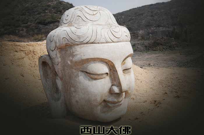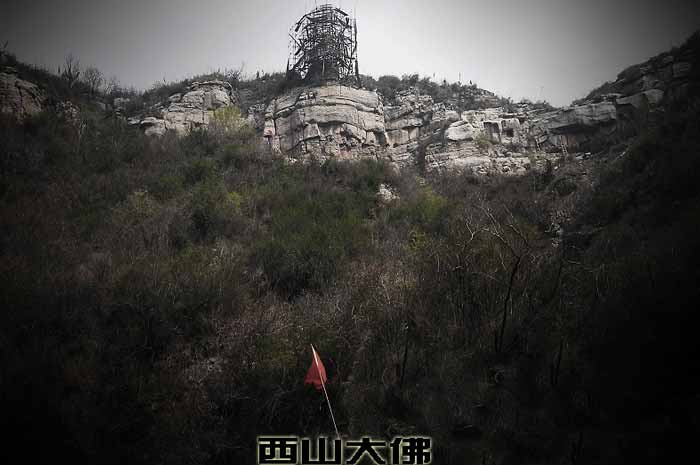 史籍记载这尊大佛是北齐文宣帝高洋天保二年(551)始凿,经五个皇帝,二十余年,后主高 纬时凿成。《北齐书》记载在《后主恒纪》中:“凿晋阳西山为大佛像”,所以称为“晋阳西山大佛”。晋阳西山哪里?《北齐书》没有载明。晋阳西山即太原西 山,这里的天龙山天龙寺,龙山童子寺,蒙山开化寺三处都有大佛,哪处是“西山大佛”呢!史学家说法不一,有说“即天龙山造像”,有说“在蒙山,但已不存在 了”。《北齐书》载:“凿晋阳西山为大佛像,一夜燃油万盆,光照宫内”。“宫”指历史上着名的晋阳宫,遗址在晋源镇古城营村九龙庙一带,看来哪尊大佛处 “燃油万盆”光能照到古城营村,便是那尊大佛。