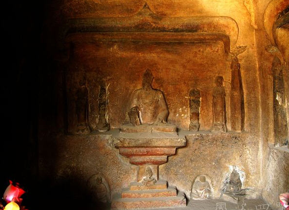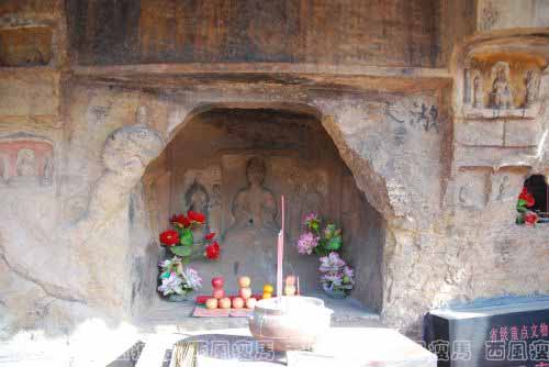 寺内有上、中、下三龛,大小佛像 百余尊,佛像大者高4.4米,小者仅高0.12米,其造像风格和神态与大同云冈石窟佛像如出一辙,故有“三晋小云冈”之称。 药岭寺 在药岭山,原名清凉寺,始建于明宣德九年(1434),位于平定县南20公里处。这里风光优美,景色如画。春天绿茵漫山,夏天清爽凉人,秋天霜叶如花,殷 红可爱。因夏天凉爽,成为避暑的好去处。曾有挪威、黎巴嫩、美国等国家相继在这里建造过别墅。