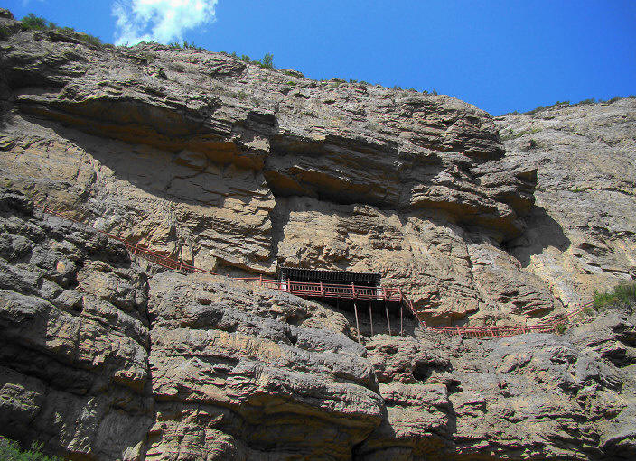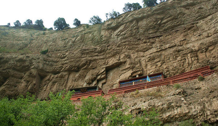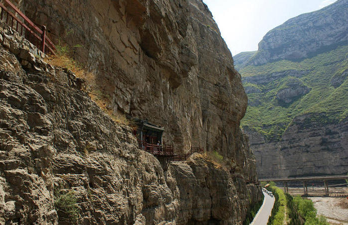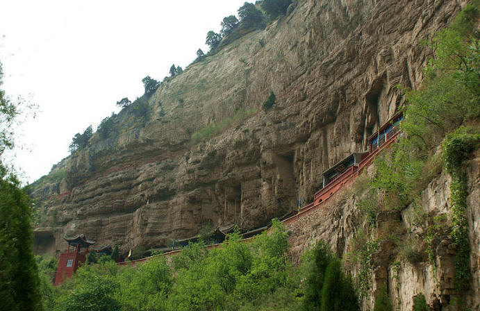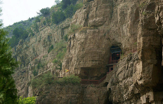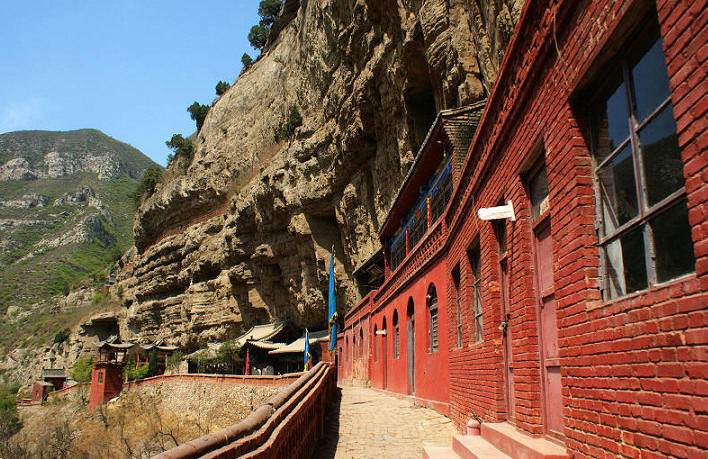千年古刹悬泉寺就座落在景区内的悬崖峭壁上,据碑文记载:“在唐、宋、元、明、清各代规模不同,兴衰不一。”另载:“宋咸平三年(1000)这里已成为 旅游胜地,后晋王朱GANG据为‘晋王府柴炭之地’明英宗八年(1433)成为‘晋藩国主香火院’明成化三年(1467)迫于民声返院还寺,归还民众。” 悬泉寺上列岩崖石檐,下列百尺汾水,古人赞其曰:“鸟飞聚散,鱼跃沉浮,樵子担荷,渔翁垂钓,秀峰环绕,汾水引流,深谷建立,岩崖造修,恍如云梦,不啻瀛 州。”寺内有大雄宝殿、地藏殿、观音殿、藏经楼、观音堂、七佛洞、龙王殿、罗汉洞殿堂,有神仙洞、仙人岛、平安壕、观音赐福、成仙洞、棒槌石、龙王洞、同 心石、打儿窟等自然景点,还有一二层千米古栈道,悬泉滴水瀑布,石映山门,春花烂漫,云雾山峰,碧血红叶,雨帘珠屏等奇特景观更为游人赏心悦目,趣味无 穷。