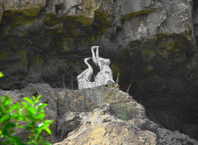 站在二层栈道顶部龙王洞山顶,汾河二库全景尽收眼底,湖面碧波荡漾,汽艇往复穿梭,驰骋遨游,更为游客增添了无限乐趣。山顶后的绿草坪,尤如仙人铺就的地毯。相对应的奇山怪石峥嵘险峻,趣味无穷。有的像狗熊,有的像大象,有的像猴子,有的像乌龟……。