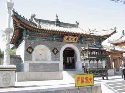 后殿为二层楼房,单檐硬山顶,五开间,面宽12.4米,进深9.6米。两旁为耳房,原为供奉五方文殊的殿宇,现正在按照原样恢复。