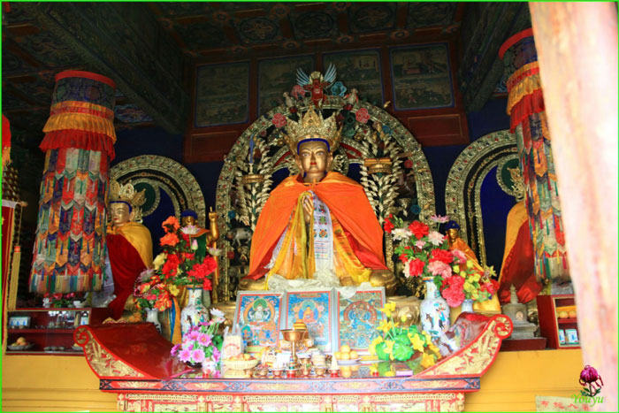 在广化寺,走进佛堂,走进僧 舍,到处弥漫着浓厚的佛教文化气息,不同民族的僧尼用不同的语言研读着各种经书,青灯黄卷,那种严谨治学的氛围颇使人感动。管家阿旺金巴年轻且有才情,他 除了苦读经文,广交社会名士,还爱好诗词书画,客堂内便悬挂了品位颇高的山水画及书法作品,皆出自名家之手。他珍藏的名人字画日渐增多,自己也在练习绘画 和书法。在广化寺,与僧侣们交流,得到的是人生的启悟,抛却的是世俗积习的灰尘。
