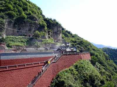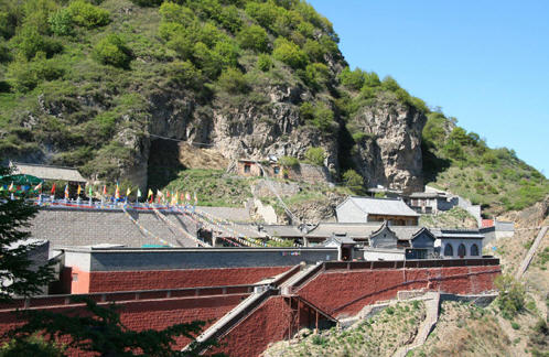 石灰岩洞,坐落在南台东南支脉接近山顶的地方。从台怀镇寺庙集群区出发,顺清水河下走10公里,到白云寺,转而入西谷口,穿沟登山2.5公里即到。