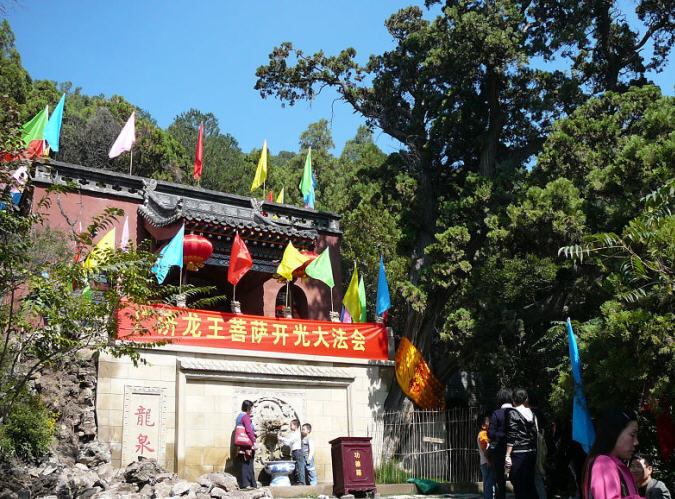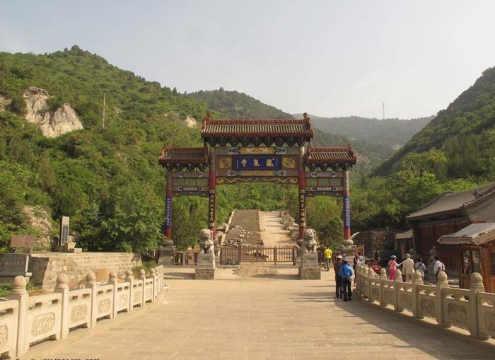 据旧 方志所载,龙泉寺原为道教昊天祠,始建于710年(唐景云元年),毁于金元战火,1391年(明洪武二十四年)重建时改为佛寺,并将附近的观音、童子等5 寺并入。据说当时天旱无雨,地方官员和众百姓齐至太山拜佛祈雨,发现了汨汨而流的泉水,以为是虔诚求雨有应,龙王赐泉,于是给寺院冠以“龙泉”之雅名,并 在泉水之上修建了龙王庙。自此,太山因有龙泉水而名声大振,远近朝山拜佛之人络绎不绝,龙泉寺里晨钟暮鼓,香火旺盛。