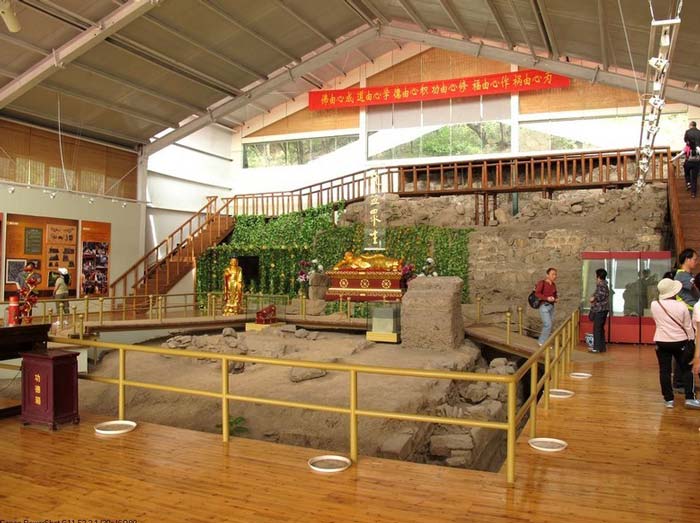在佛界自古就有“东庆山,西法门”之说。庆山寺遗址在西安临潼区新丰镇,是武则天时期建立的著名皇家寺院。地宫之上按照供奉舍利的修建舍利宝塔。经考古 专家清理、考察,从墓穴中发现了包括佛祖真身舍利在内的佛祖释迦牟尼舍利宝帐。佛祖真身舍利出土的时候,被层层保护,先是保存在舍利瓶中,舍利瓶被安放在 金棺中,金棺再放入银椁,银椁再放置在舍利宝帐中。